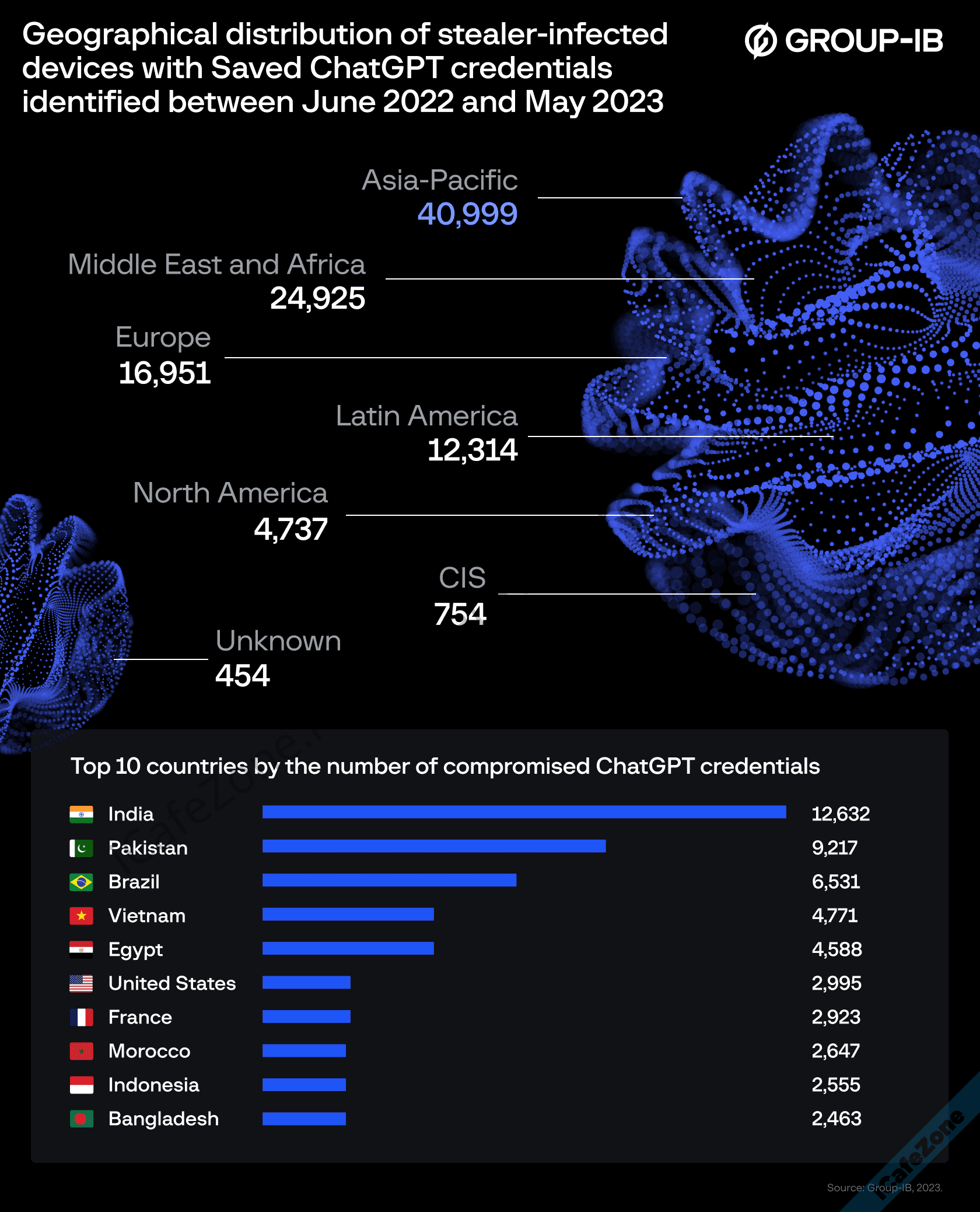 บริษัทความปลอดภัยไซเบอร์ Group-IB ออกรายงานเหตุข้อมูลรั่วไหลจากมัลแวร์ขโมยข้อมูล พบว่าช่วงหลังมัลแวร์ที่อาละวาดหนักๆ 3 ตัว คือ Raccoon, Vidar, และ Redline ดึงข้อมูลล็อกอิน ChatGPT ไปได้มากขึ้นเรื่อยๆ ตามความนิยมในบริการ โดยรวมพบล็อกอิน ChatGPT หลุดกว่าแสนรายการแล้ว