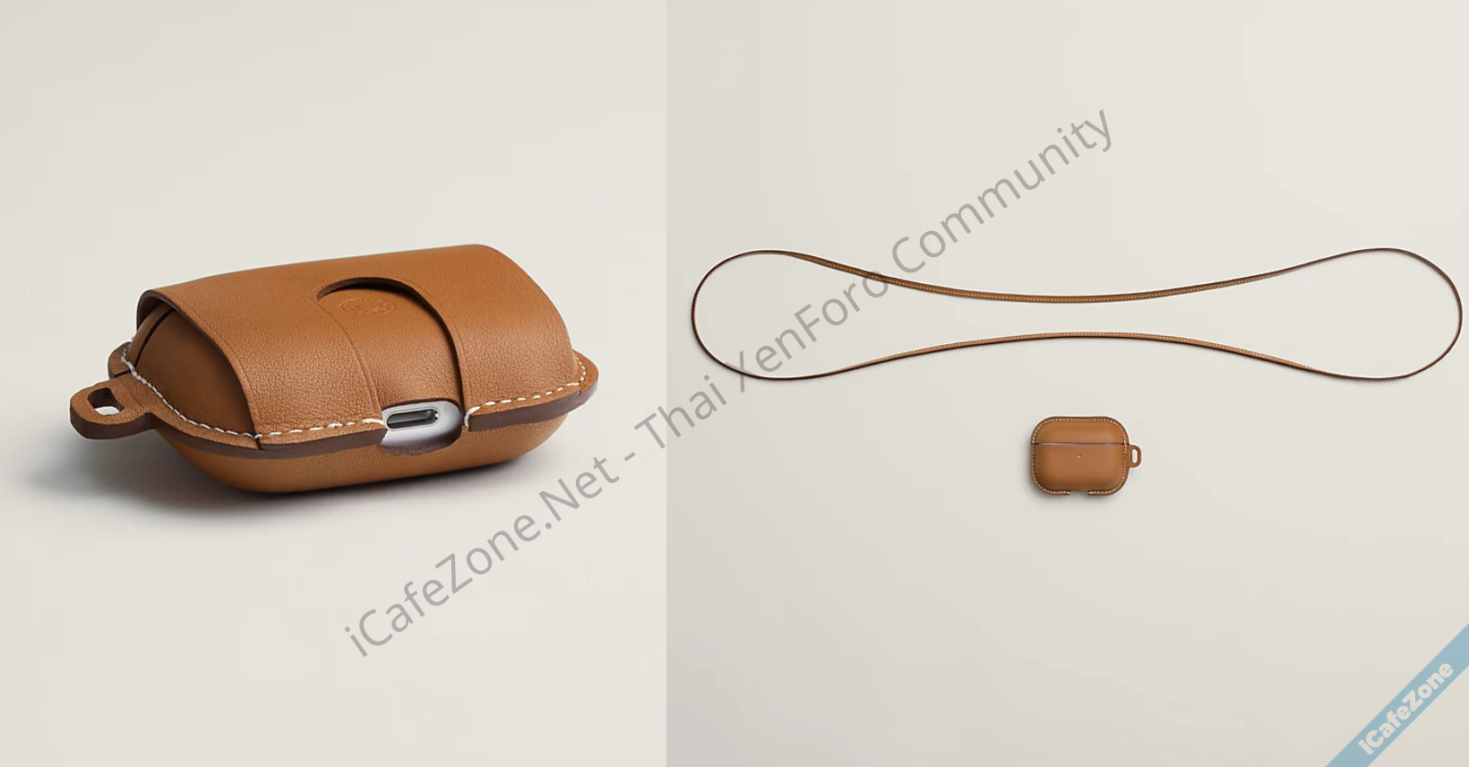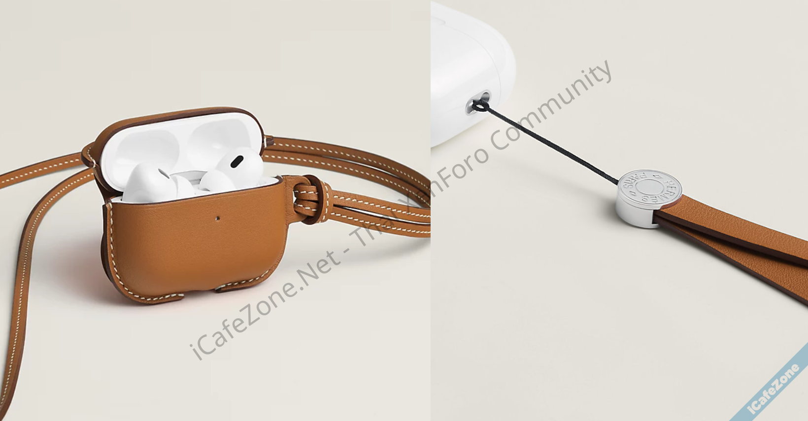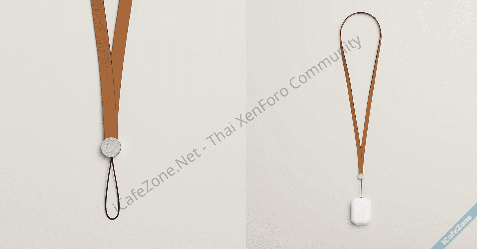นอกจากตัวเคสแล้ว Hermès ยังเปิดตัวคล้อง AirPods ที่ทำจากหนังวัวแท้มาพร้อมกับตัวยึดสายเคลือบด้วยโลหะขาว แต่สายคล้องตัวนี้สามารถใช้ได้กับ Airpods Pro 2 เท่านั้น เนื่องจากมีช่องผูกสายคล้อง