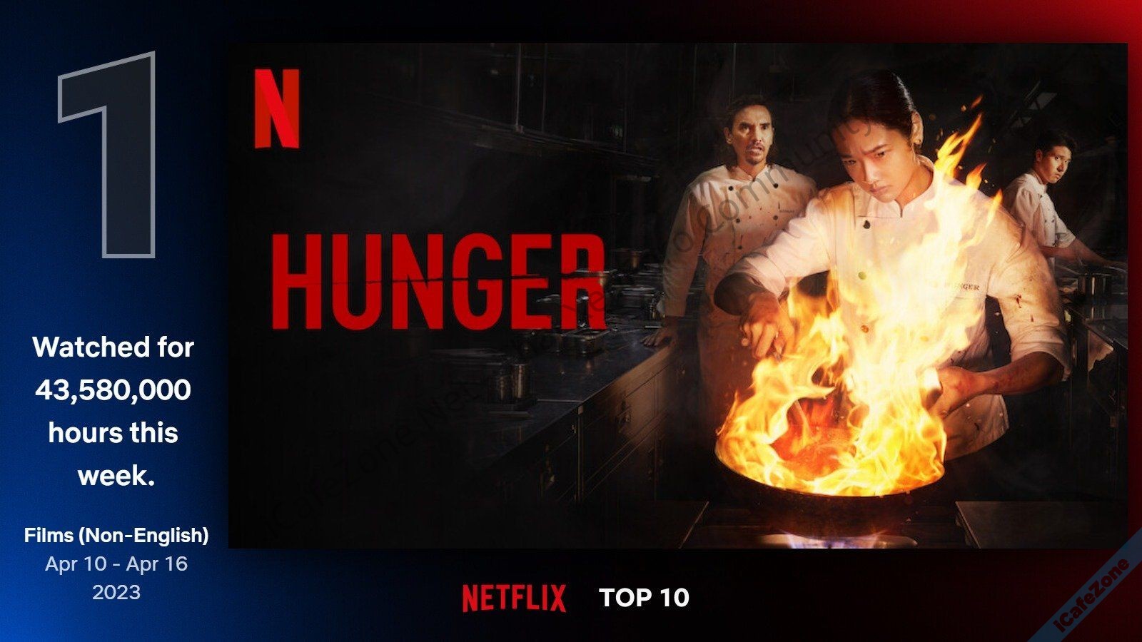 Netflix ประกาศอันดับคอนเทนต์ยอดนิยมประจำสัปดาห์ทั่วโลกระหว่างวันที่ 10 เมษายน ถึง 16 เมษายน 2023 โดยมีประเด็นน่าสนใจคือ "Hunger คนหิว เกมกระหาย" ภาพยนตร์ออริจินัลของ Netflix จากประเทศไทย มีจำนวนชั่วโมงการรับชมรวม 43.58 ล้านชั่วโมง สูงที่สุดเป็นอันดับ 1 ในภาพยนตร์ทั้งหมดบนแพลตฟอร์ม