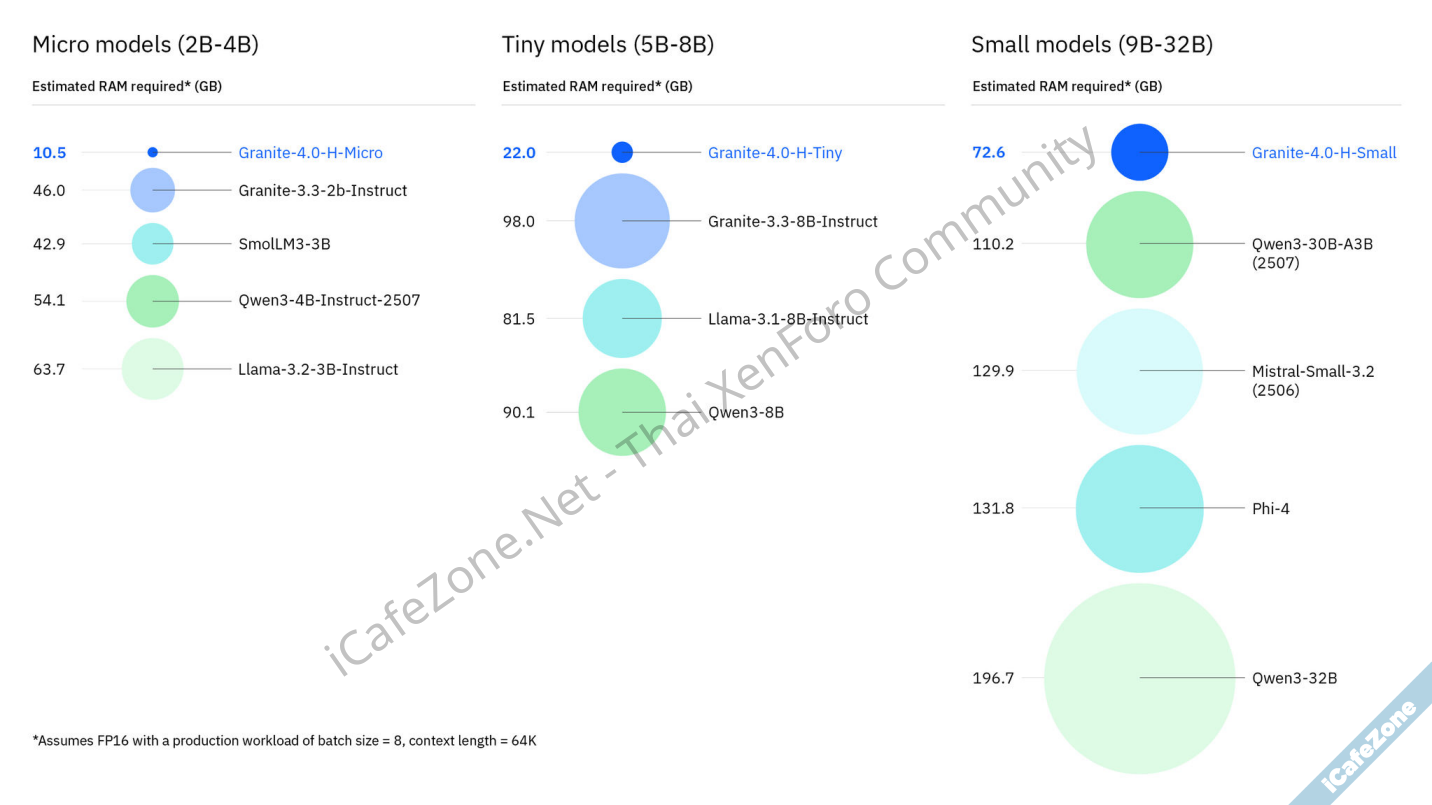 ข้อดีของ Granite 4.0 จึงเป็นการทำงานโดยใช้แรมน้อยลงมาก และยังรักษาประสิทธิภาพเอาไว้ได้ มันสามารถรันบนจีพียูราคาถูกลงมา ช่วยลดต้นทุนลงได้เทียบกับโมเดล LLM แบบดั้งเดิม (ในงานตัวเดียวกัน ใช้แรม 15GB เทียบกับโมเดล Granite 3.3 ตัวเดิมที่ใช้แรม 90GB ลดลง 6 เท่า)