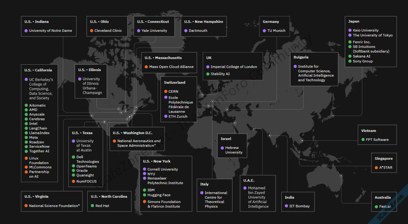 ตัวอย่างบริษัทที่เป็นสมาชิกได้แก่ AMD, Cerebras, Dell Technologies, Hugging Face, Intel, Oracle, Red Hat, ServiceNow, Sony, Stability AI