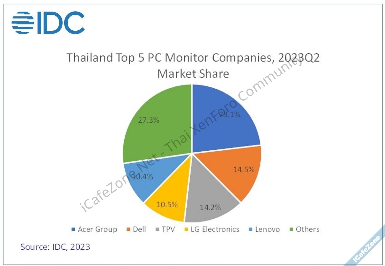บริษัทวิจัยตลาด IDC รายงานภาพรวมตลาดจอภาพสำหรับพีซี ของไตรมาสที่ 2 ปี 2023 ตลาดรวมลดลง 1.5% เมื่อเทียบกับไตรมาส 2 ปี 2022 แต่เพิ่มขึ้น 0.1% เมื่อเทียบกับไตรมาส 1 ปี 2023 ขายได้รวม 250,000 จอ เป็นตลาดภาคธุรกิจ 77,000 จอ ลดลง 10.2% ซึ่งเป็นผลจากการรอสถานการณ์หลังการเลือกตั้งในประเทศ