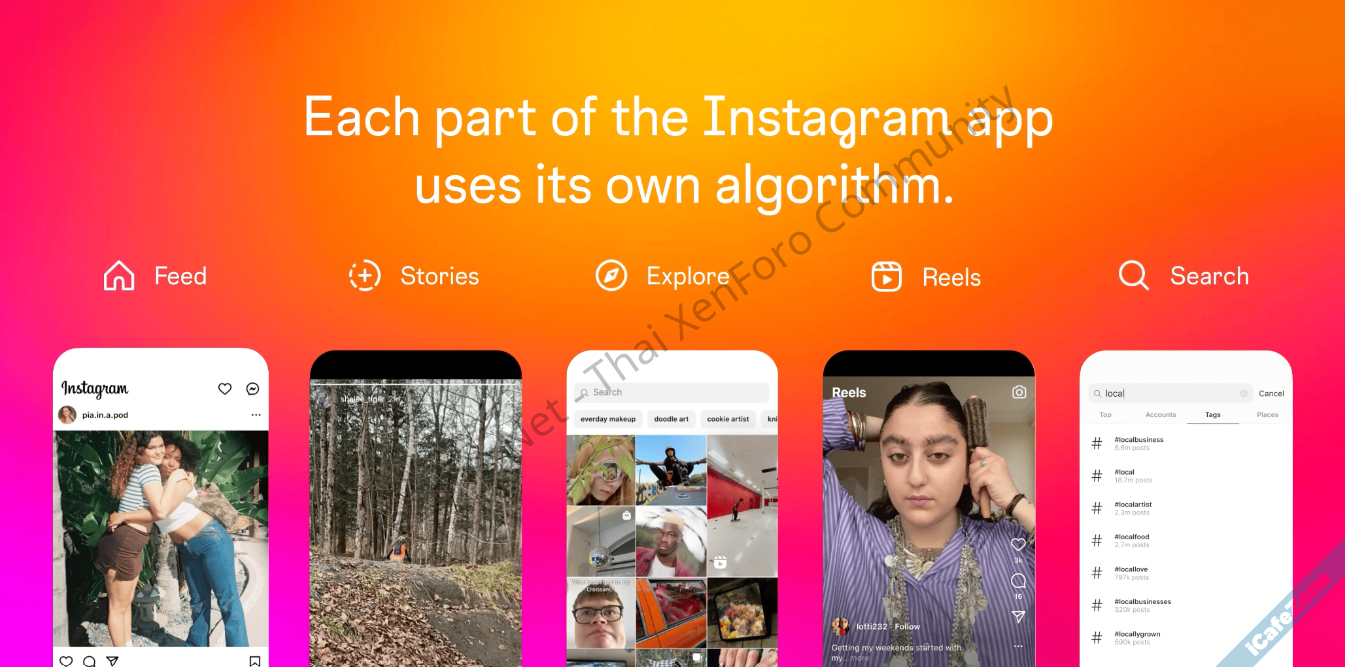 โดยเขาบอกว่าแต่ละส่วนในแอปทั้ง Feed, Stories, Explore, Reels, Search และอื่น ๆ ต่างมีอัลกอริทึม ตัวจำแนก และการประมวลผล ในวิธีที่แตกต่างกันออกไป ไม่ใช่สูตรเดียวใช้กับทั้งแอป เพราะแต่ละส่วนมีการใช้งานในวัตถุประสงค์ที่แตกต่างกันไป เช่น Stories ใช้ดูอัพเดตจากเพื่อนสนิท Explore ใช้หาคอนเทนต์หรือครีเอเตอร์น่าสนใจใหม่ ๆ ส่วน Reels เน้นดูคลิปที่สนุก การทำงานนี้จะร่วมกับฟังก์ชันอย่าง Close Friends, Favorites และคนที่ติดตามหรือ Following