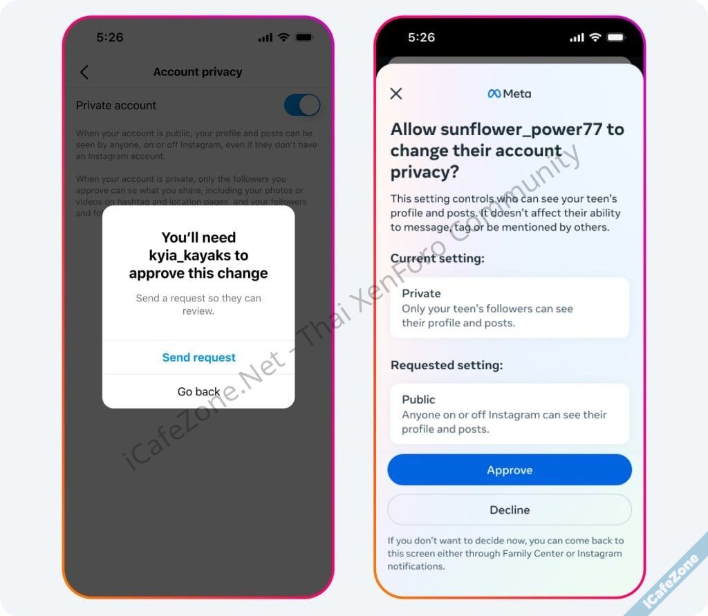 Meta ยังเพิ่มเครื่องมือสำหรับผู้ปกครอง ให้สามารถอนุมัติหรือปฏิเสธ เมื่อผู้ใช้งานวัยรุ่นพยายามแก้ไขการตั้งค่าเริ่มต้นเหล่านี้ ทั้งการรับข้อความ DM, การเปลี่ยนสถานะบัญชีจาก Private เป็น Public หรือการควบคุมเนื้อหาที่แสดงในฟีด เพื่อช่วยปกป้องทั้งความปลอดภัยและความเป็นส่วนตัวของผู้ใช้งาน