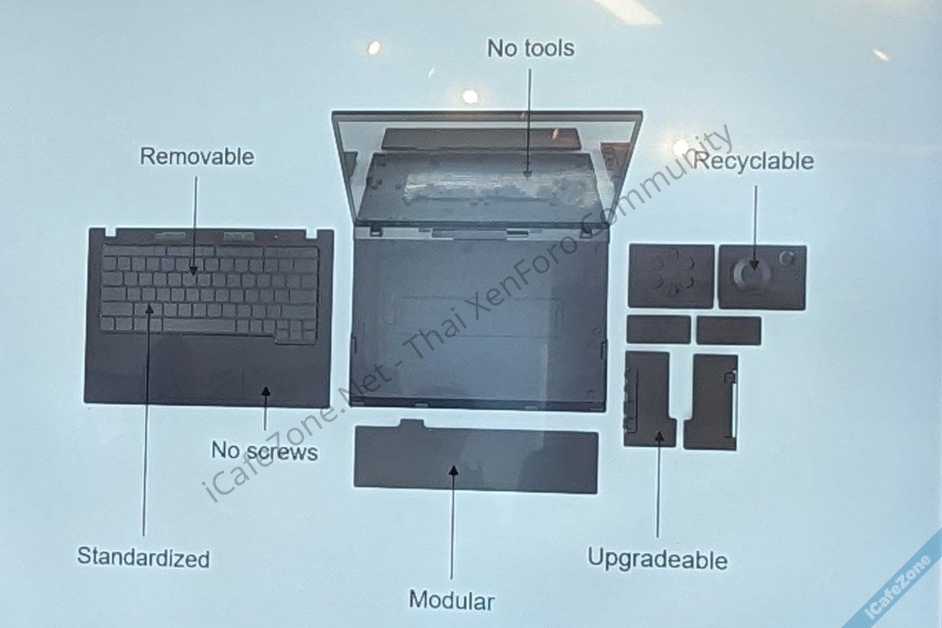 แต่ที่น่าสนใจคือ Project Aurora โครงการพัฒนาโน้ตบุ๊กที่ถอดชิ้นส่วนเป็นโมดูลได้ นำบางโมดูลที่เสียหรือล้าสมัยแล้วไปรีไซเคิลเฉพาะจุดได้ อัพเกรดชิ้นส่วนที่สเปกใหม่กว่าเดิมได้ ผู้ใช้ยังสามารถถอดซ่อมเองได้โดยแทบไม่ต้องใช้สกรูเลย