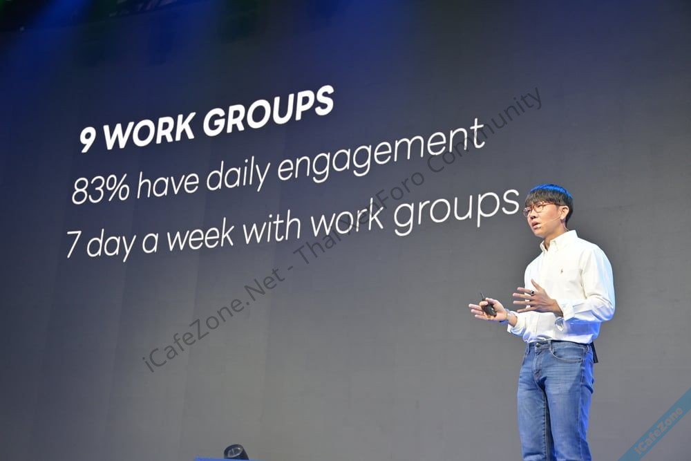 ผลสำรวจจาก LINE ประเทศไทยพบว่า หมวดหมู่ Group Chat ยอดนิยมได้แก่ กลุ่มเพื่อน 82% ครอบครัว 80% ที่ทำงาน 77% และโรงเรียน 27% ยังระบุเพิ่มว่า Group Chat ช่วยให้การทำงานเป็นไปอย่างรวดเร็วและง่ายขึ้น ทำให้เกิดสังคมการทำงานที่มีประสิทธิภาพ นำมาสู่การพัฒนาโซลูชั่นที่ตอบโจทย์ Work Group สำหรับคนไทย เพื่อสร้างความสมดุลระหว่างการทำงาน การใช้ชีวิตและครอบครัวไปด้วยกัน