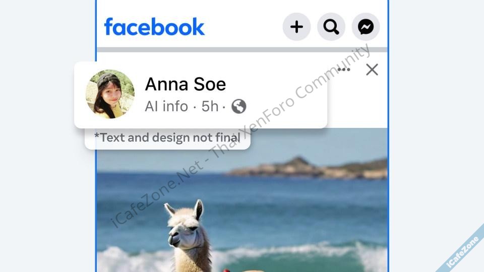 ตัวอย่างที่ Meta นำมาแสดงจะมีป้ายกำกับเขียนว่า AI Info อยู่ในโพสต์ (ข้อความจริงๆ อาจเปลี่ยนแปลงได้ในอนาคต) โดยป้ายกำกับนี้จะขึ้นบอกด้วยแม้ว่าเป็นภาพที่สร้างด้วย AI ของบริษัทอื่น เช่น Google, OpenAI, Microsoft, Adobe, Midjourney, Shutterstock เพราะบริษัทเหล่านี้มีข้อตกลงร่วมกันว่าจะใส่ metadata และลายน้ำที่มองไม่เห็นไว้ในภาพที่สร้างด้วย AI (เผื่อใครสนใจ สเปกมาตรฐาน metadata ที่ใช้คือ C2PA และ IPTC)