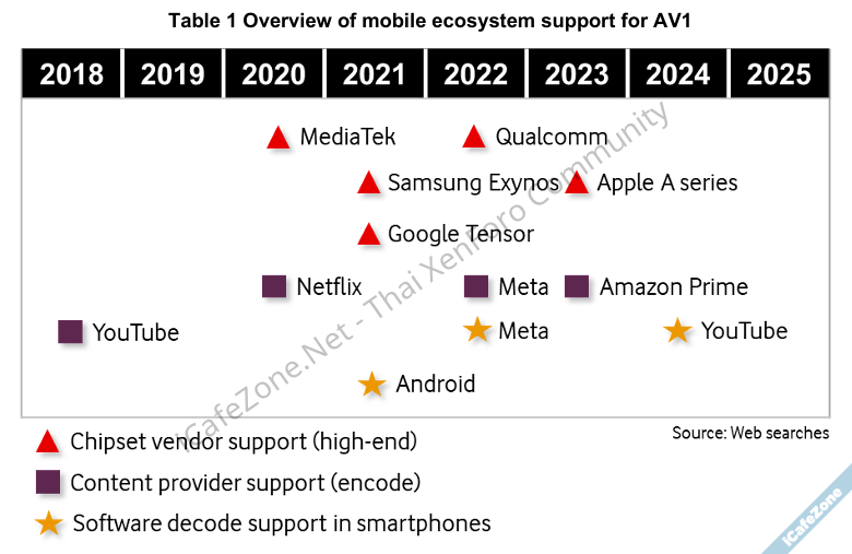 ประเด็นของรายงานนี้ไม่ใช่เรื่องใหม่ เพราะก่อนหน้านี้ เคยมีรายงานวิเคราะห์ปัญหาของ AV1 ของ The Verge ที่ได้ข้อสรุปตรงกันว่า การเปลี่ยนผ่านสู่ AV1 ไม่เร็วอย่างที่คิด แม้ฝั่งผู้เผยแพร่คอนเทนต์อย่าง Meta, Google, Netflix พร้อมมานานแล้ว แต่ยังติดขัดเรื่องชิป โดยเฉพาะบ้านแอปเปิลที่รองรับช้า (กว่าจะรองรับหมดทุกรุ่นย่อยคือ iPhone 15) และ SoC สำหรับมือถือราคาถูกที่เป็นส่วนมากในท้องตลาด