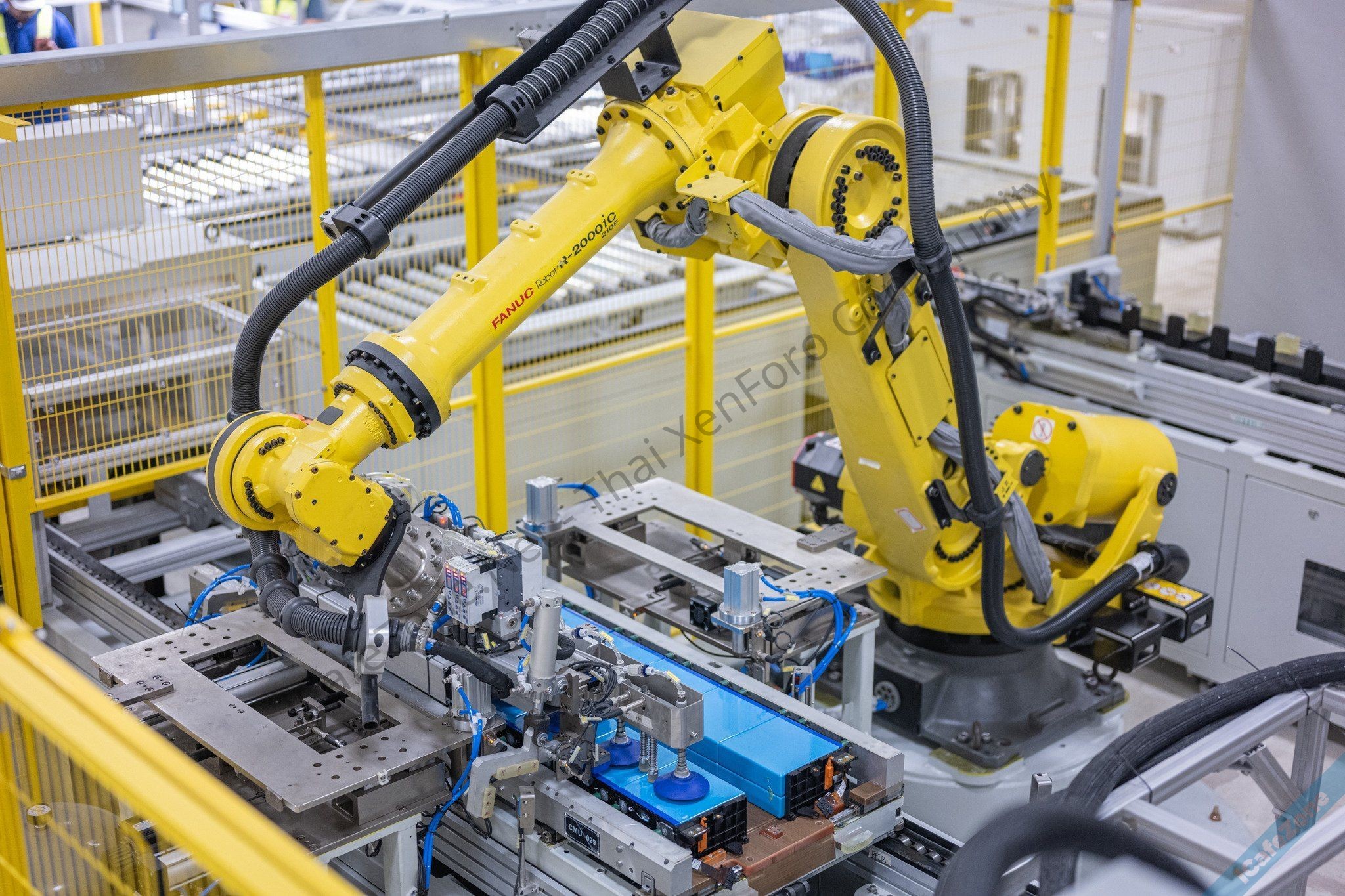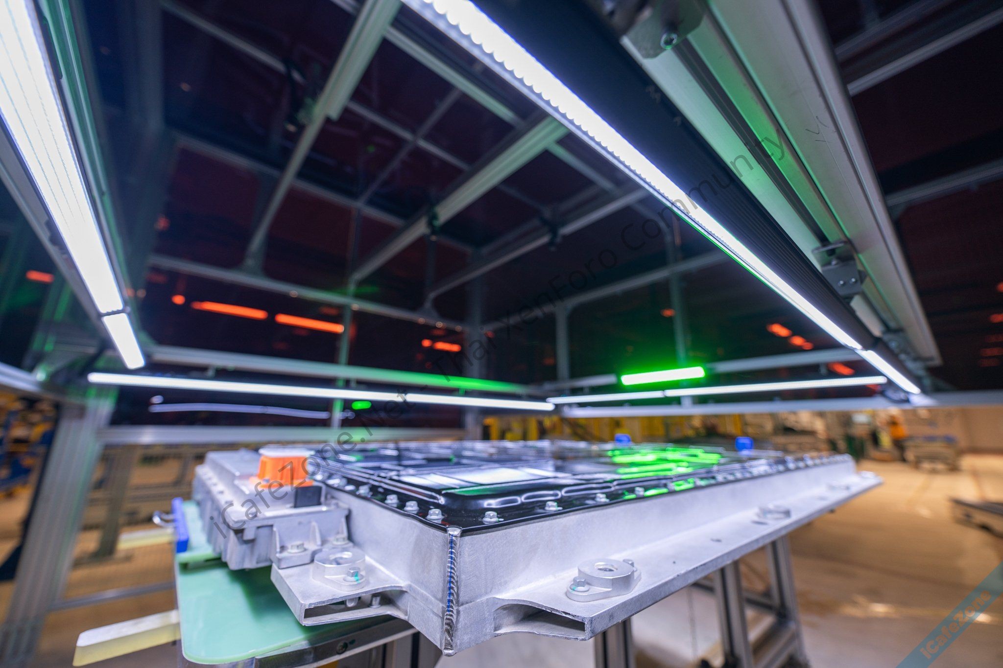 - ส่วนการประกอบแบตเตอรี่ ประกอบด้วยสายการผลิตอัตโนมัติที่นำหุ่นยนต์ (Robotic) เข้ามาช่วยในการผลิต เชื่อมโดยเลเซอร์ (Laser Welding) ตรวจสอบด้วย CCD (Charge Coupled Device) ในทุกขั้นตอนก่อนนำไปใส่ในตัวรถยนต์พลังงานไฟฟ้า 100%