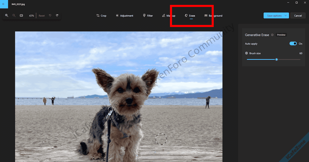 ไมโครซอฟท์ประกาศปรับปรุงความสามารถของแอป Photos บน Windows ที่เดิมสามารถลบบางจุดในภาพออกไปได้ เรียกว่า Spot Fix ซึ่งการปรับปรุงใหม่นี้ก็มาพร้อมชื่อใหม่คือ Generative Erase ซึ่งไมโครซอฟท์บอกว่าทำงานได้กลมกลืนกว่าเดิม ผลลัพธ์ที่ได้ก็ดูสมจริงขึ้น