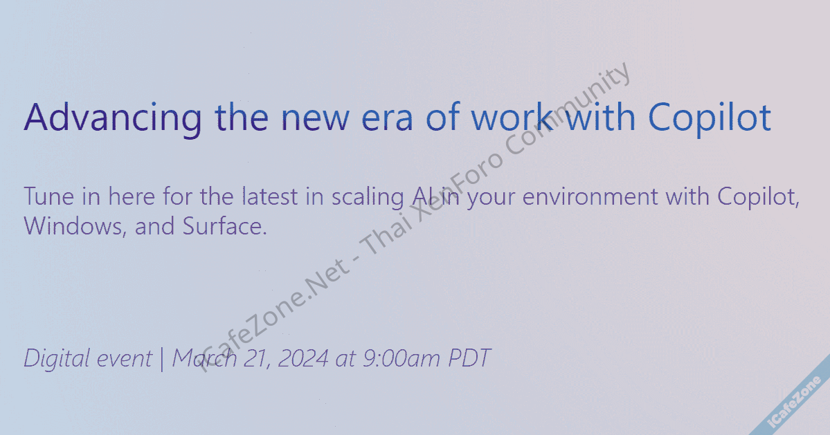 ไมโครซอฟท์ประกาศจัดงานแถลงข่าวเปิดตัวสินค้าใหม่ ตรงกับเวลาเที่ยงคืนเข้าสู่วันที่ 22 มีนาคม 2024 ตามเวลาในไทย โดยใช้ชื่องานว่า New Era of Work เผยแพร่เฉพาะช่องทางออนไลน์