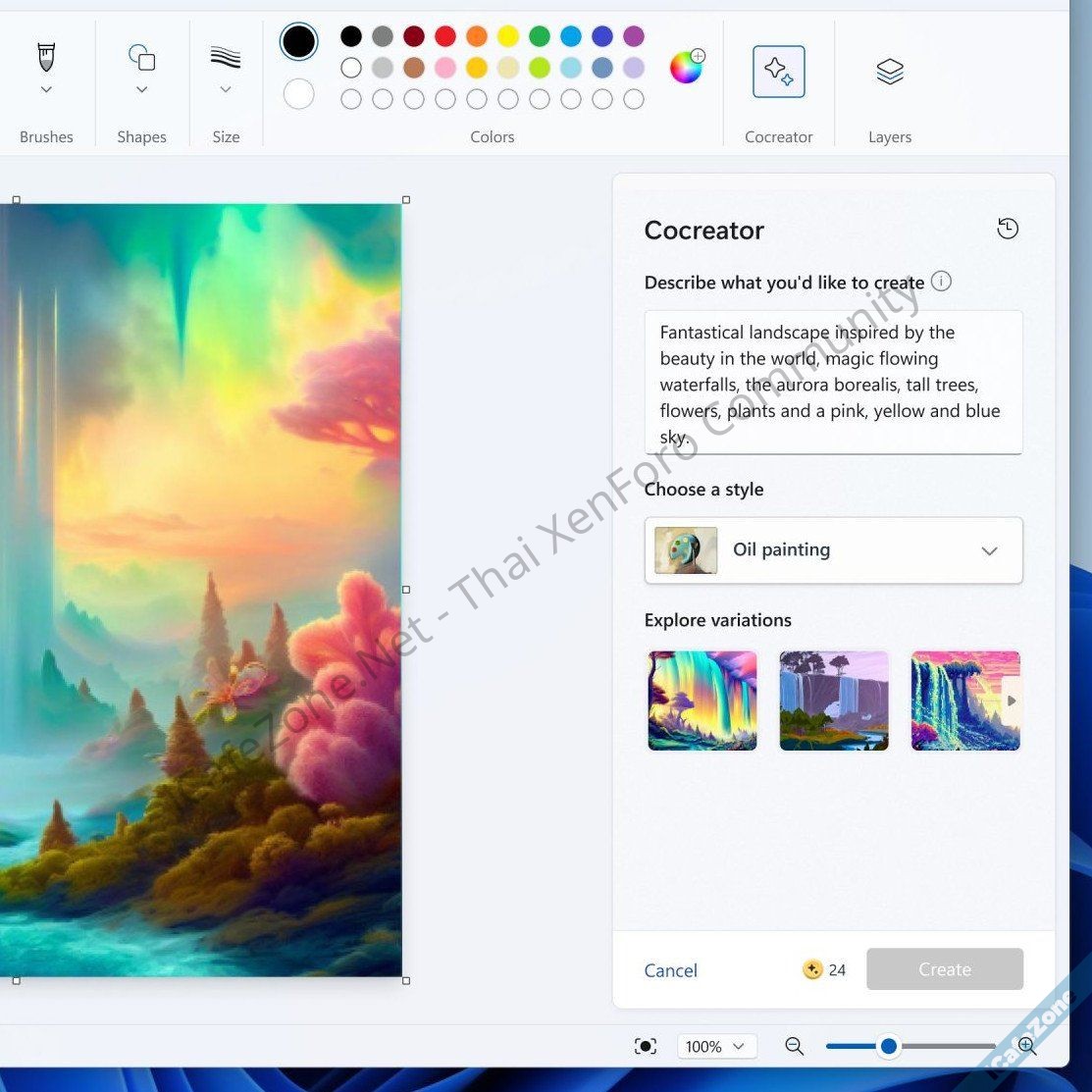 ฟีเจอร์ใหม่ที่เปิดตัวเมื่อคืนนี้ ตรงตามข่าวลือก่อนหน้า คือการใช้ Dall-E สร้างภาพจาก AI แล้วแทรกลงใน Paint โดยตรง