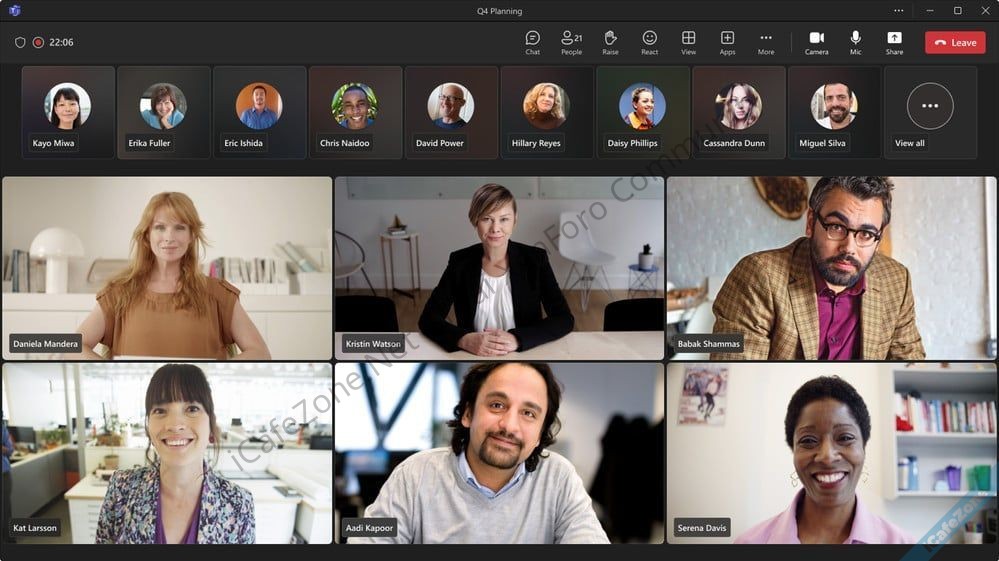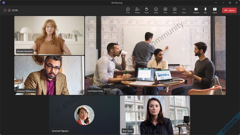 ในกรณีที่มีผู้เข้าประชุมผ่านอุปกรณ์ Teams Room ที่เป็นเว็บแคมมองเห็นทั้งห้องประชุม ช่องกริดของห้องประชุมนั้นจะขยายใหญ่ขึ้นให้อัตโนมัติ เพื่อให้คนที่ประชุมแบบรีโมทมองเห็นคนในห้องประชุมได้ชัดเจนขึ้น (สามารถปรับเปลี่ยนขนาดได้ตามต้องการ)