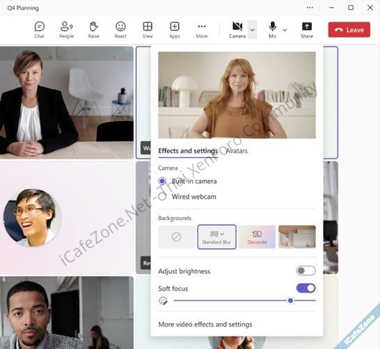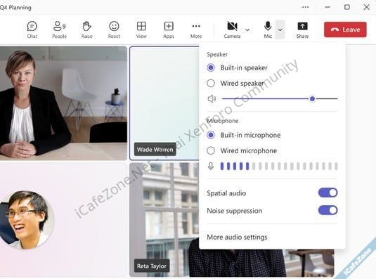 ปรับหน้าจอตั้งค่าไมโครโฟน ลำโพง และกล้อง ขณะกำลังประชุม มีเมนูแบบ drop-down ลงมาให้ตั้งค่าได้ง่ายขึ้น