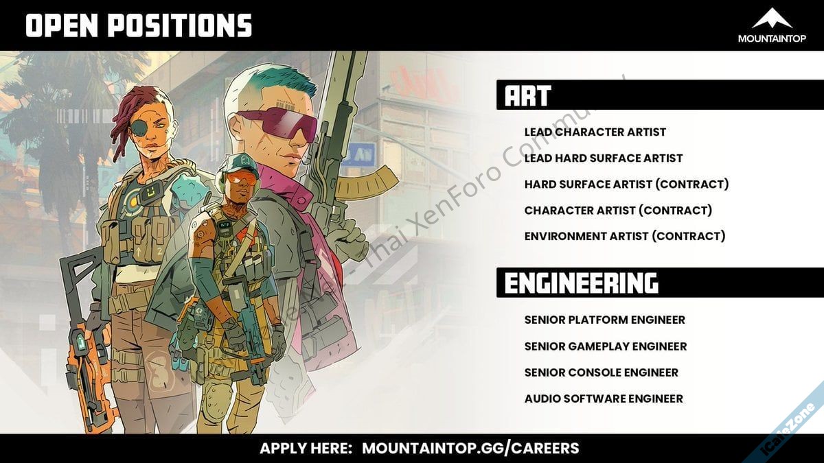 พนักงานของ Mountaintop Studios มีประมาณ 50 คนแล้ว โดยมีพนักงานจากสตูดิโอเกมดังๆ หลายแห่งย้ายมาร่วมทีม เช่น Double Fine, Valve, Naughty Dog, Riot Games, Blizzard Entertainment