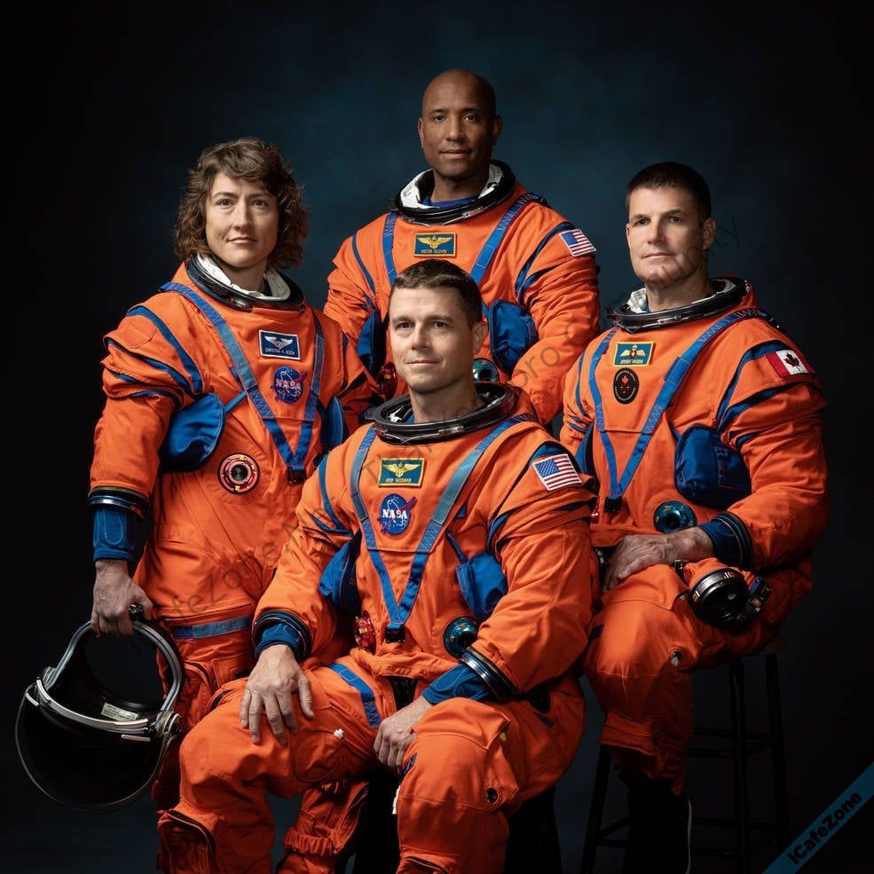 ภาพถ่ายนักบินของ Artemis II จากซ้าย hristina Hammock Koch, Reid Wiseman (นั่ง), Victor Glover, Jeremy Hansen