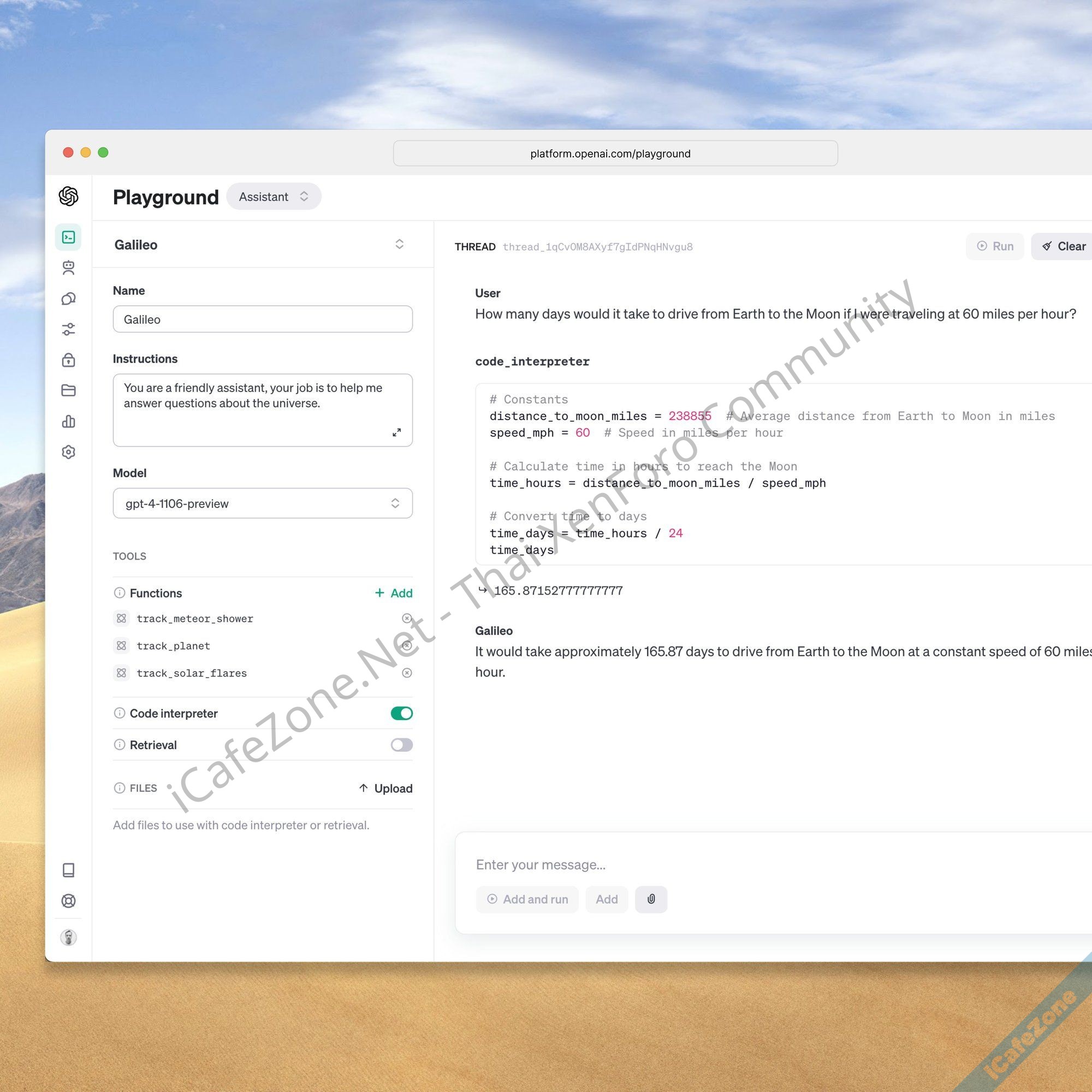 นอกจากโมเดลใหม่แล้ว รอบนี้ยังประกาศ Assistants API มีฟีเจอร์สำคัญคือ จำข้อความเดิมได้ไม่จำกัด จากเดิมที่การเรียก API นั้นนักพัฒนาต้องเป็นผู้ใส่ข้อความเดิมเข้าไปเอง, สามารถอ่านเอกสารได้ในตัวไม่ต้องทำฐานข้อมูล vector ด้วยตัวเอง, มี Python Interpreter อยู่ภายในใช้สำหรับการประมวลผลข้อมูล, และรองรับการเรียกฟังก์ชั่นภายนอก