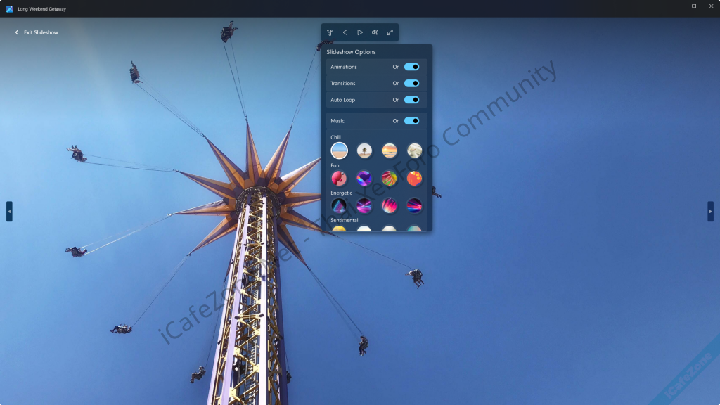 Slideshow ที่เพิ่งกลับมาทำได้ รองรับแอนิเมชันตอนเปลี่ยนภาพหลากหลาย มีเพลงประกอบให้ 25 เพลง