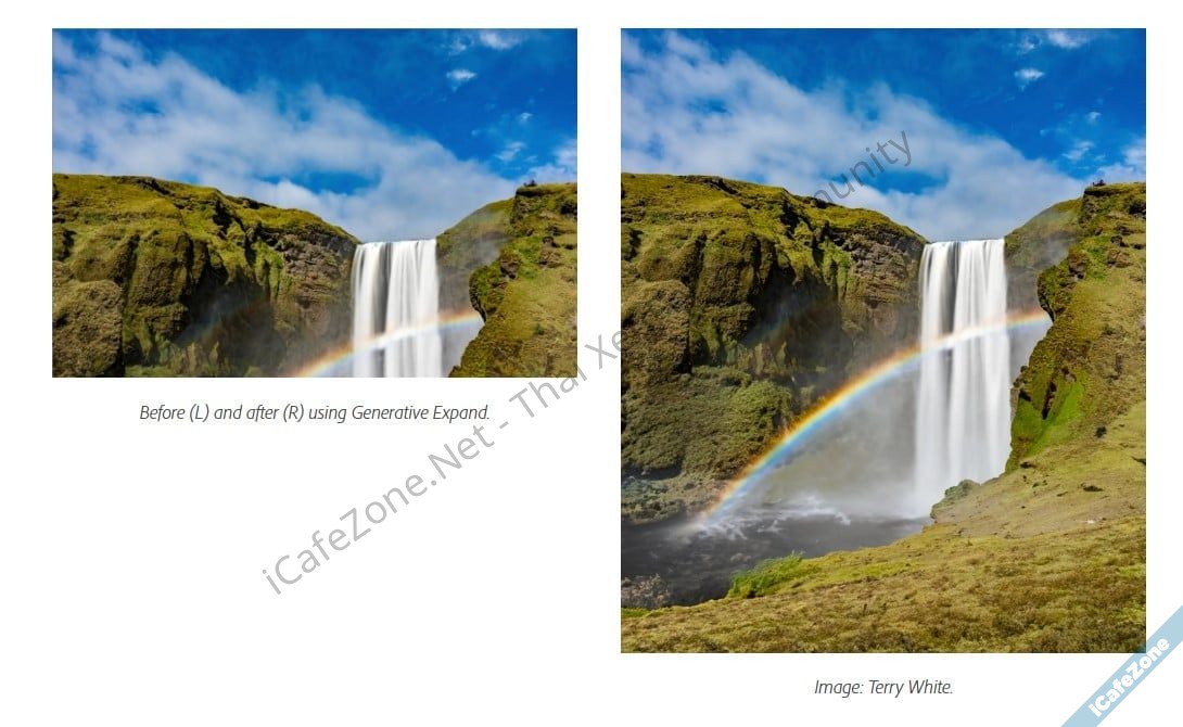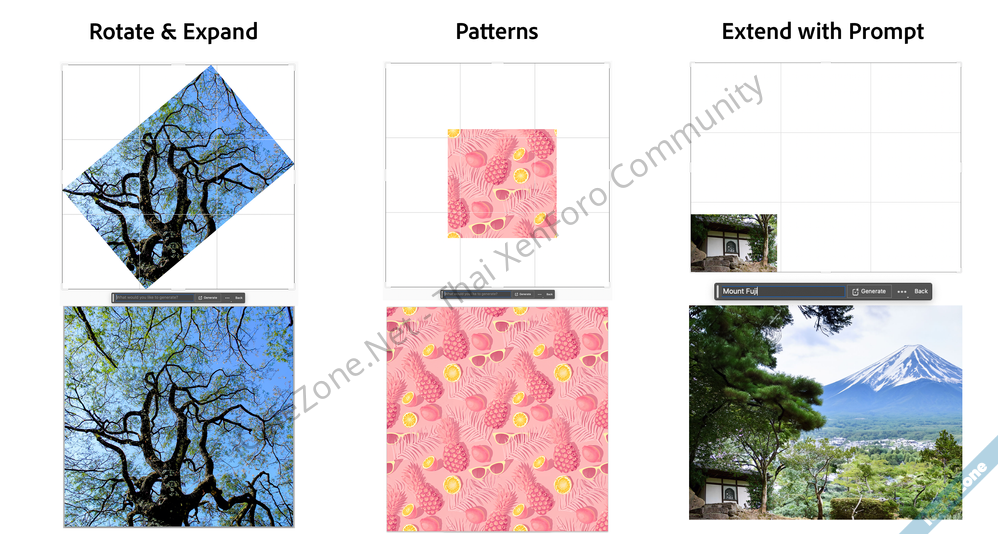 ฟีเจอร์นี้เป็นภาคต่อของ Generative Fill ที่เพิ่มเข้ามาเมื่อเดือนพฤษภาคม โดยมีหลักการทำงานเหมือนกันคือใช้ Adobe Firefly ช่วยสร้างภาพส่วนที่ขาดหายไปให้ตามคำสั่ง หรือจะมองว่ามันเป็นด้านกลับของคำสั่ง crop ก็ได้เช่นกัน