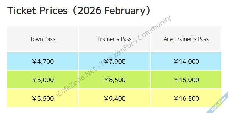 บัตรเข้า PokéPark Kanto แบ่งเป็นสามประเภทคือ Ace Trainer's Pass ราคาแพงที่สุด สามารถเข้าออกพื้นที่หลักได้ไม่จำกัด, Trainer's Pass จำกัดการเข้า Pokémon Forest ระบุเวลา 1 ครั้ง และ Town Pass ราคาถูกที่สุด เข้าได้เฉพาะ Sedge Town แบบระบุเวลา ไม่สามารถเข้า Pokémon Forest ได้ ซึ่ง Town Pass ยังไม่มีขายในตอนนี้ บัตรทั้งหมดรวมค่าเข้าสวนสนุกหลัก Yomiuriland แล้ว