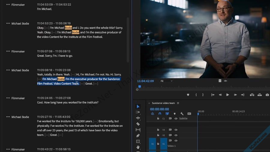 การทำงานของมันคือ Premier Pro ใช้ AI ช่วยถอดเสียงพูดของฟุตเตจทั้งหมดออกมาเป็นข้อความ และซอยฟุตเตจตามข้อความแต่ละช่วงแสดงเป็น timeline จากนั้นเราสามารถจิ้มเลือกข้อความที่ต้องการไปใส่ในวิดีโอ กดปุ่ม insert แล้วก็จะได้ฟุตเตจช่วงนั้นแทรกเข้าไปในโปรเจควิดีโอที่กำลังตัดต่ออยู่เลย ไม่ต้องมานั่งฟังเสียงแล้วเลือกช่วงเวลาที่ต้องการเหมือนที่แล้วๆ มา