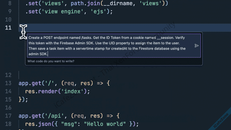 ตัวอย่างฟีเจอร์ inline AI assistant ที่กูเกิลนำมาโชว์คือการสั่งให้เขียนโค้ดจัดการ endpoint ที่เชื่อมต่อกับ Firebase โดยระบุให้ขอ ID token และตั้งค่า UID ให้เรียบร้อย ซึ่ง Gemini ก็จะสร้างโค้ดชุดนี้มาให้เลย, ตัวอย่างอื่นคือการสั่งให้ refactor โค้ด หรือเขียน unit test ของฟังก์ชันที่ต้องการ