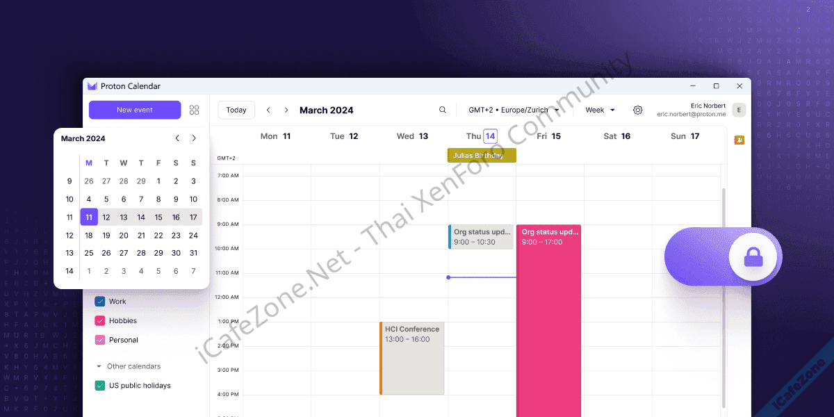 Proton บอกว่าไคลเอนต์บนเดสก์ท็อปยังคง UI ที่คุ้นเคยของเวอร์ชันเว็บ แต่เพิ่มฟีเจอร์สำหรับการใช้งานบนเดสก์ท็อปเข้ามา เช่น ธีม light/dark, การแสดงข้อความแจ้งเตือนผ่านช่องทางของ OS, การสลับระหว่างหน้าจออีเมลและปฏิทินได้รวดเร็วกว่าเว็บ นอกจากนี้ยังมีระบบอิมพอร์ตอีเมลเดิมจาก Outlook หรือ Gmail เข้ามาในไคลเอนต์ Proton Mail
