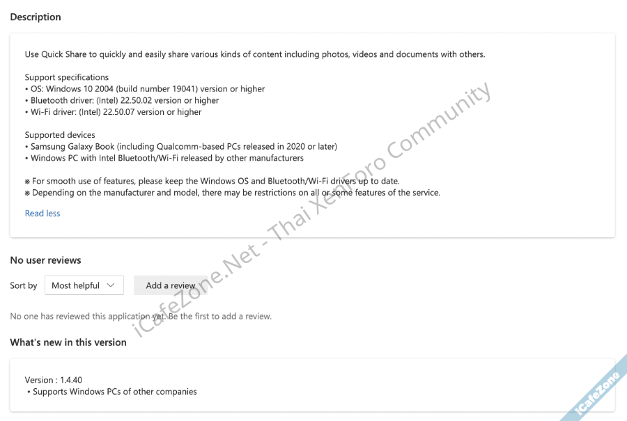 แต่ทว่า จากรายละเอียดการอัปเดตแอป Quick Share เวอร์ชันปัจจุบัน ระบุว่าแอปจะสามารถทำงานได้บน Windows ที่ใช้ไดร์ฟเวอร์ของ Intel ทั้งบลูทูธเวอร์ชัน 22.50.02 ขึ้นไปและไดร์ฟเวอร์ Wi-Fi เวอร์ชัน 22.50.07 ขึ้นไป