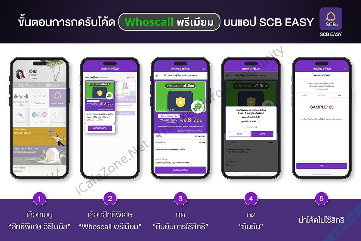 สามารถกดรับโค้ด Whoscall พรีเมียม บนแอป SCB EASY ผ่าน 5 ขั้นตอนง่ายๆ