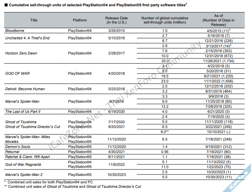ธุรกิจเกมมีรายได้ 9.541 แสนล้านเยน เพิ่มขึ้น 32% จากทั้งยอดขายคอนโซลและเกมที่เพิ่มขึ้นโดย PS5 ขายได้อีก 4.9 ล้านเครื่อง โซนี่ยังให้ข้อมูลเพิ่มเติมของยอดขาย Marvel’s Spider-Man 2 หลังเปิดตัว 24 ชั่วโมงแรกขายได้ 25 ล้านชุด โดยตัวเลขสิ้นสุดวันที่ 30 ตุลาคม (ขายมา 11 วัน) เพิ่มเป็น 5.0 ล้านชุด อย่างไรก็ตามเกมวางขายในเดือนตุลาคม จึงยังไม่เป็นรายได้ของไตรมาสที่ผ่านมาในรายงาน