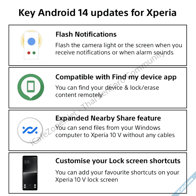 ฟีเจอร์ที่โซนี่ชูเป็นจุดเด่นในอัพเดต Android 14 ได้แก่