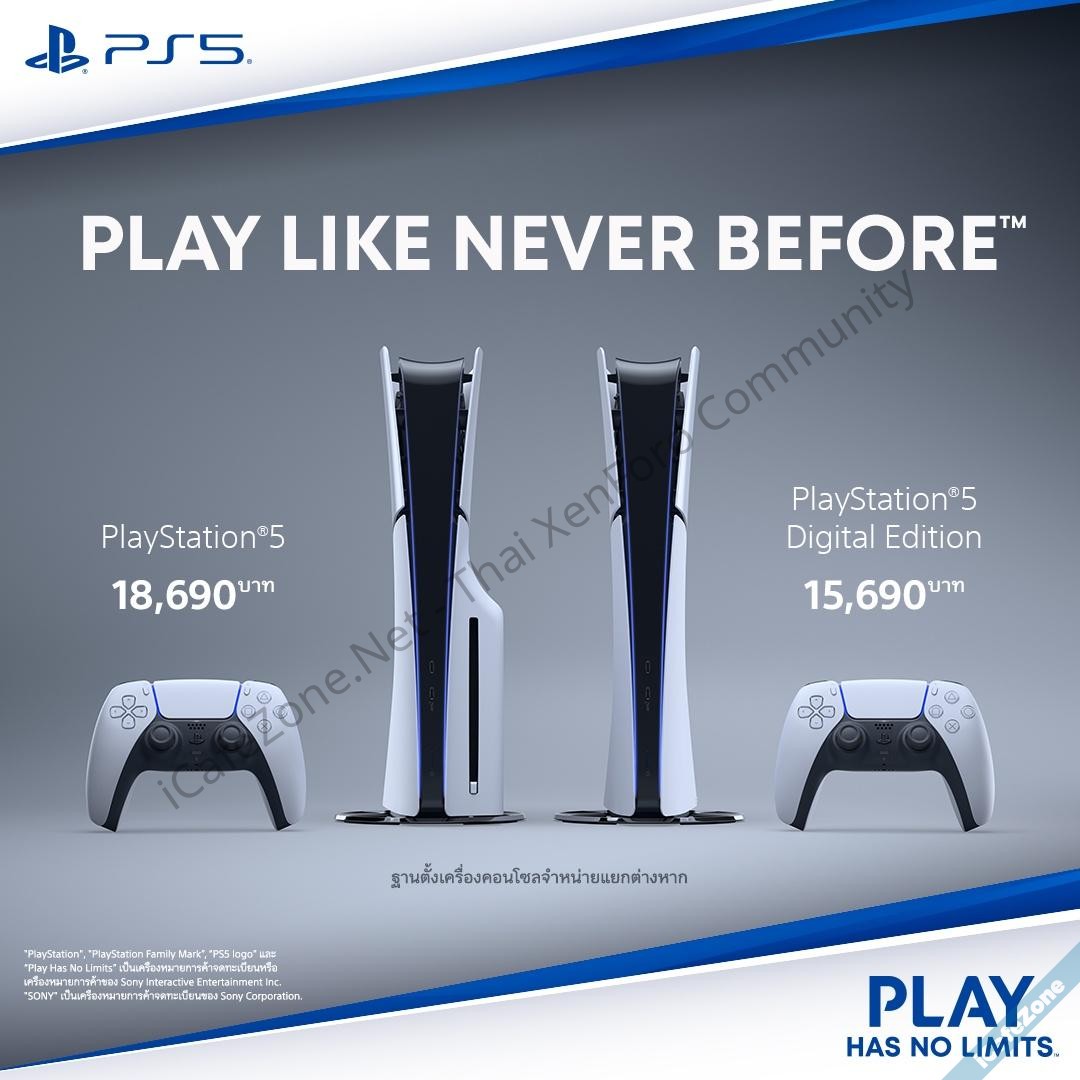 PS5 โมเดลใหม่รุ่นดิจิทัลขายในราคา 15,690 บาท ส่วนรุ่นใส่แผ่นขายในราคา 18,690 บาท ราคาเดียวกับ PS5 โมเดลเก่าที่วางขายก่อนหน้านี้ โดยโมเดลใหม่เครื่องจะเล็กกว่า, เบากว่า และได้ความจุเพิ่มขึ้นจาก 825 GB เป็น 1 TB