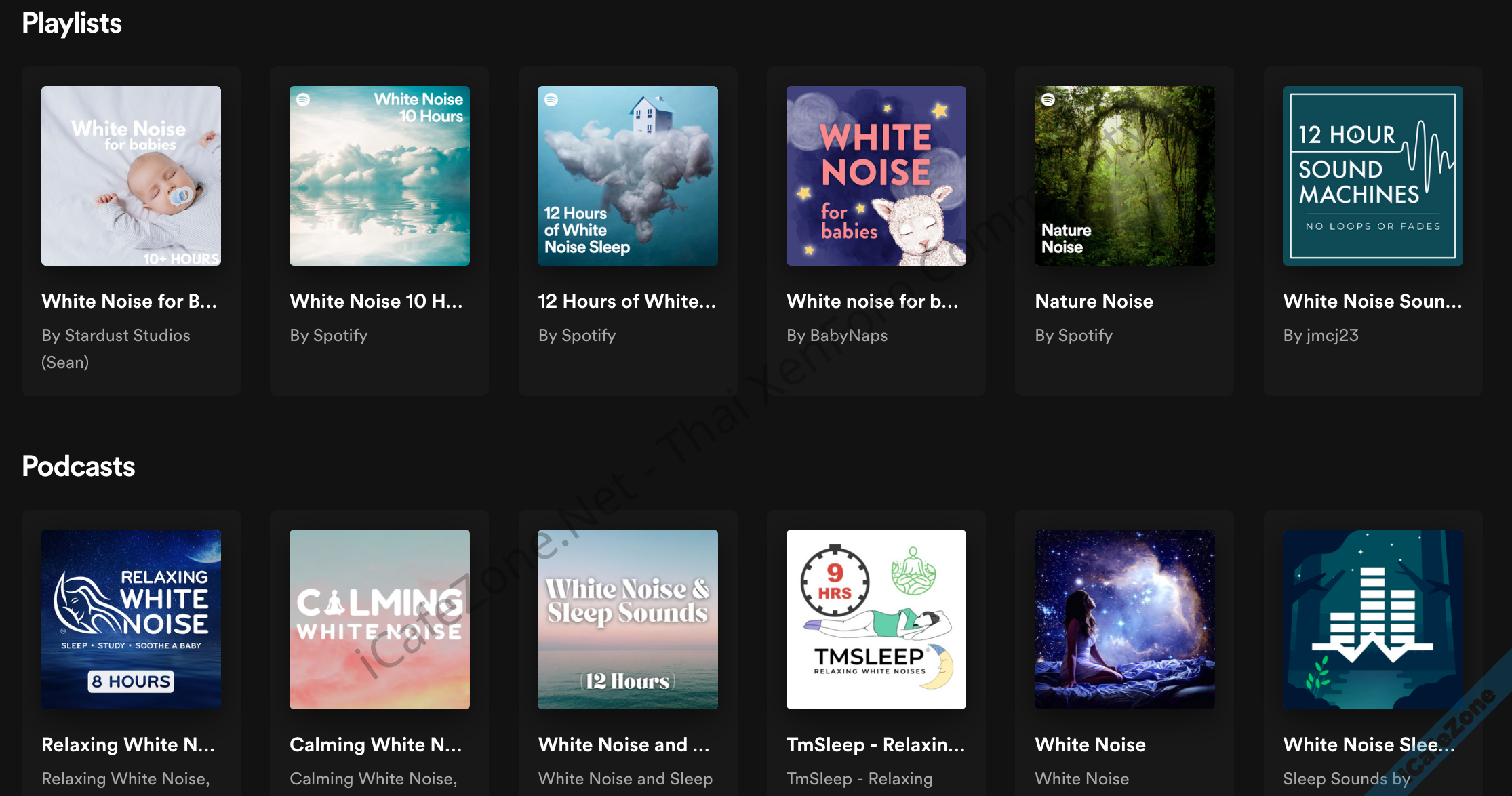 พอดแคสต์ประเภท White noise เป็นพอดแคสต์ที่เล่นเสียงที่มีคลื่นความถี่คงที่ ช่วยให้ผ่อนคลายเช่น เสียงคลื่นกระทบฝั่ง เสียงฝนตก เป็นต้น ซึ่งได้รับความนิยมอย่างมาก รายงานจาก Bloomberg ระบุว่า พอดแคสต์ประเภท White noise สามารถสร้างรายได้ประมาณ 18,000 ดอลาร์ต่อเดือน (ประมาณ 637,361 บาท) ให้กับครีเอเตอร์และมีผู้ใช้งานเข้าฟังมากถึง 3 ล้านชั่วโมง/วัน บน Spotify นับสถิติถึงมกราคม 2023