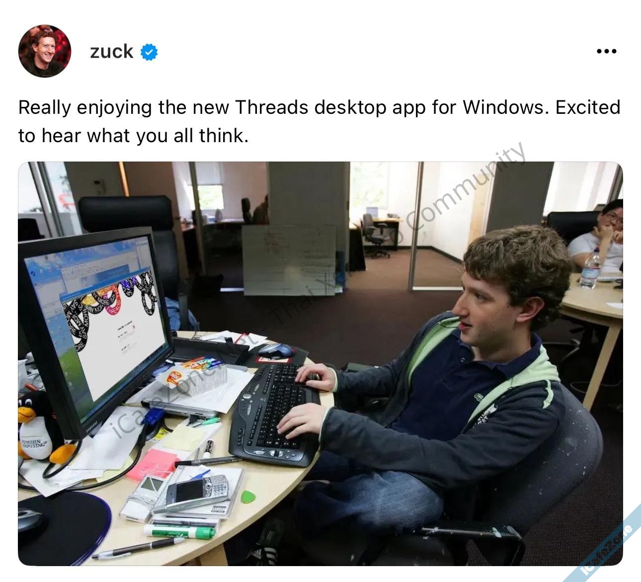 ในโอกาสนี้ซีอีโอคนดังที่เป็นเจ้าของ Threads เลยประชาสัมพันธ์แอปเวอร์ชัน Windows แบบแกงตัวเองหนึ่งรูป