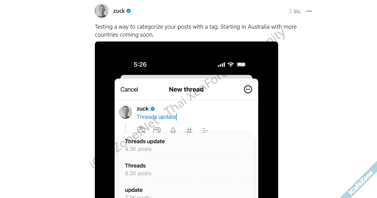 Mark Zuckerberg ซีอีโอ Meta ประกาศฟีเจอร์ใหม่ของแพลตฟอร์มโซเชียล Threads ซึ่งเป็นหนึ่งในฟีเจอร์สำคัญของ Twitter/X นั่นคือแฮชแท็ก เพื่อให้สามารถค้นหาโพสต์ที่เป็นหมวดหรือหัวข้อเรื่องเดียวกันได้ง่ายขึ้น ซึ่งจะทดสอบกับผู้ใช้งานที่ออสเตรเลียก่อน แล้วจะขยายไปยังประเทศอื่นต่อไป