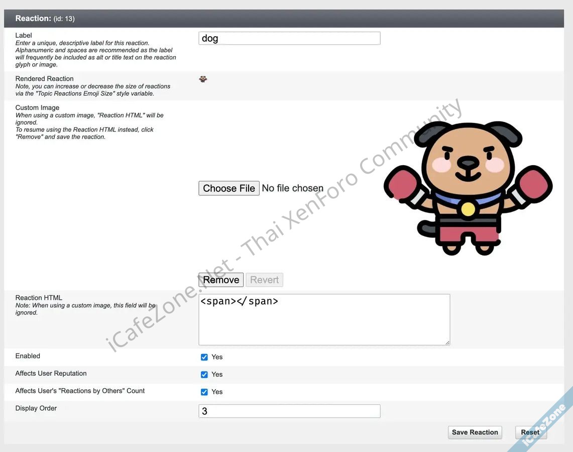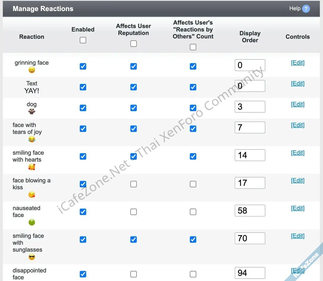 The Reaction Manager in the AdminCP has been updated with the following features:
