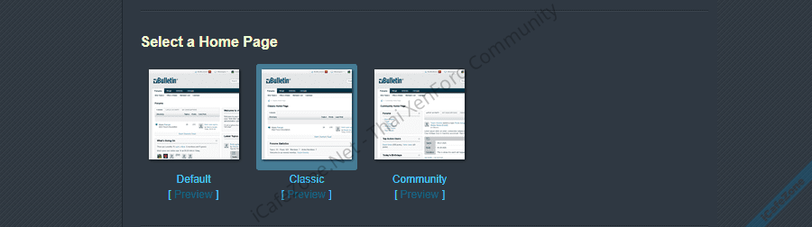 - Classic: Provides a home page similar to older versions of vBulletin. This layout only contains the Activity Stream, Statistics, and What's Going On module in a single full width column. The Activity Stream defaults to the Forums tab.