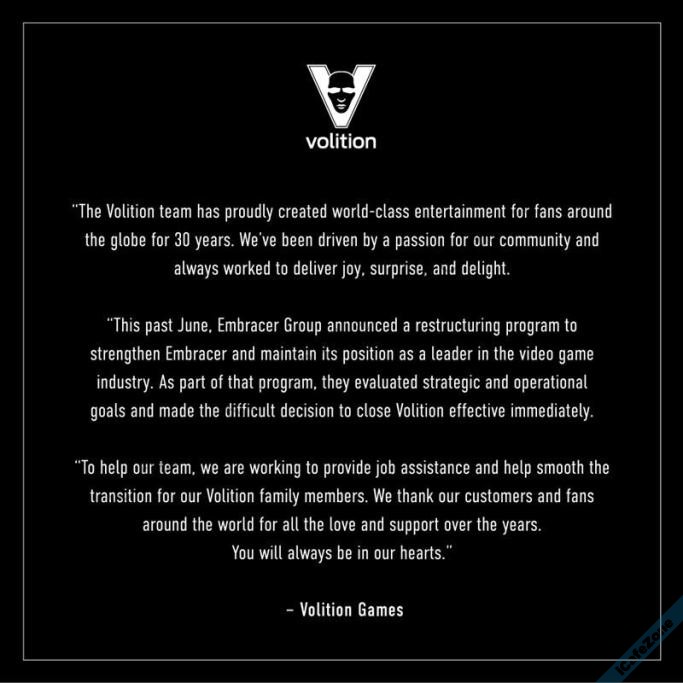 อย่างไรก็ตาม ล่าสุด Embracer ประสบปัญหาการเงิน ไม่สามารถระดมทุนได้ตามแผน ทำให้ต้องปรับโครงสร้างและปลดพนักงาน จนทำให้ต้องปิดสตูดิโอบางแห่งอย่าง Volition ด้วย