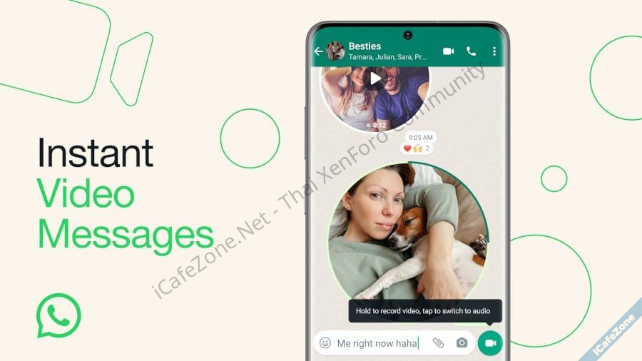 WhatsApp เพิ่มฟีเจอร์การส่งคลิปวิดีโอสั้น Instant Video Messages ความยาวไม่เกิน 60 วินาที รูปแบบคล้ายกับการอัดคลิปเสียง ที่มีปุ่มกดค้างเพื่อถ่ายคลิปแล้วส่งได้ทันที