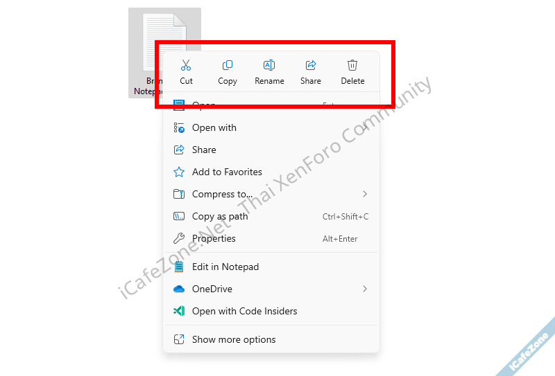 - เมนูคลิกขวาหรือ context menu ของ File Explorer ปรับเล็กน้อย โดยเพิ่มข้อความอธิบายปุ่ม เช่น Cut, Copy, Rename เมื่อเทียบกับของเดิมที่มีแต่ไอคอนเพียงอย่างเดียว
