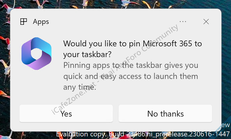 - แอพสามารถขอปักหมุด (Pin) ตัวเองในทาสก์บาร์ได้ ผู้ใช้ต้องอนุญาตก่อน