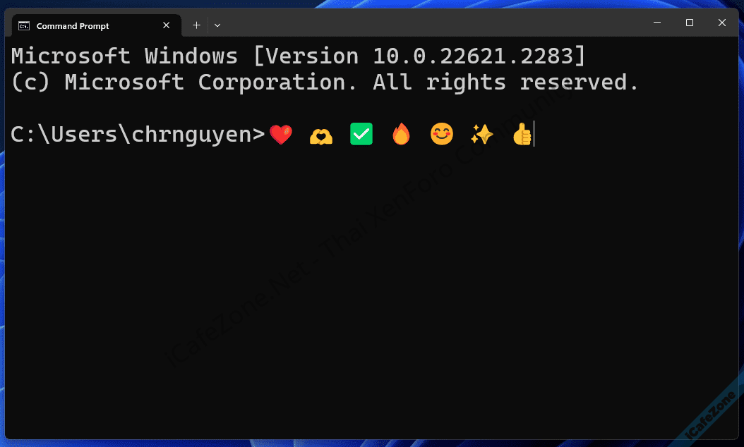 - รองรับอีโมจิ: ผู้ใช้สามารถพิมพ์อีโมจิลงในคำสั่งได้แล้ว ซึ่งสำคัญสำหรับการพิมพ์ข้อความหลายอย่าง เช่น commit message ที่เริ่มนิยมใส่อีโมจิกันมากขึ้น