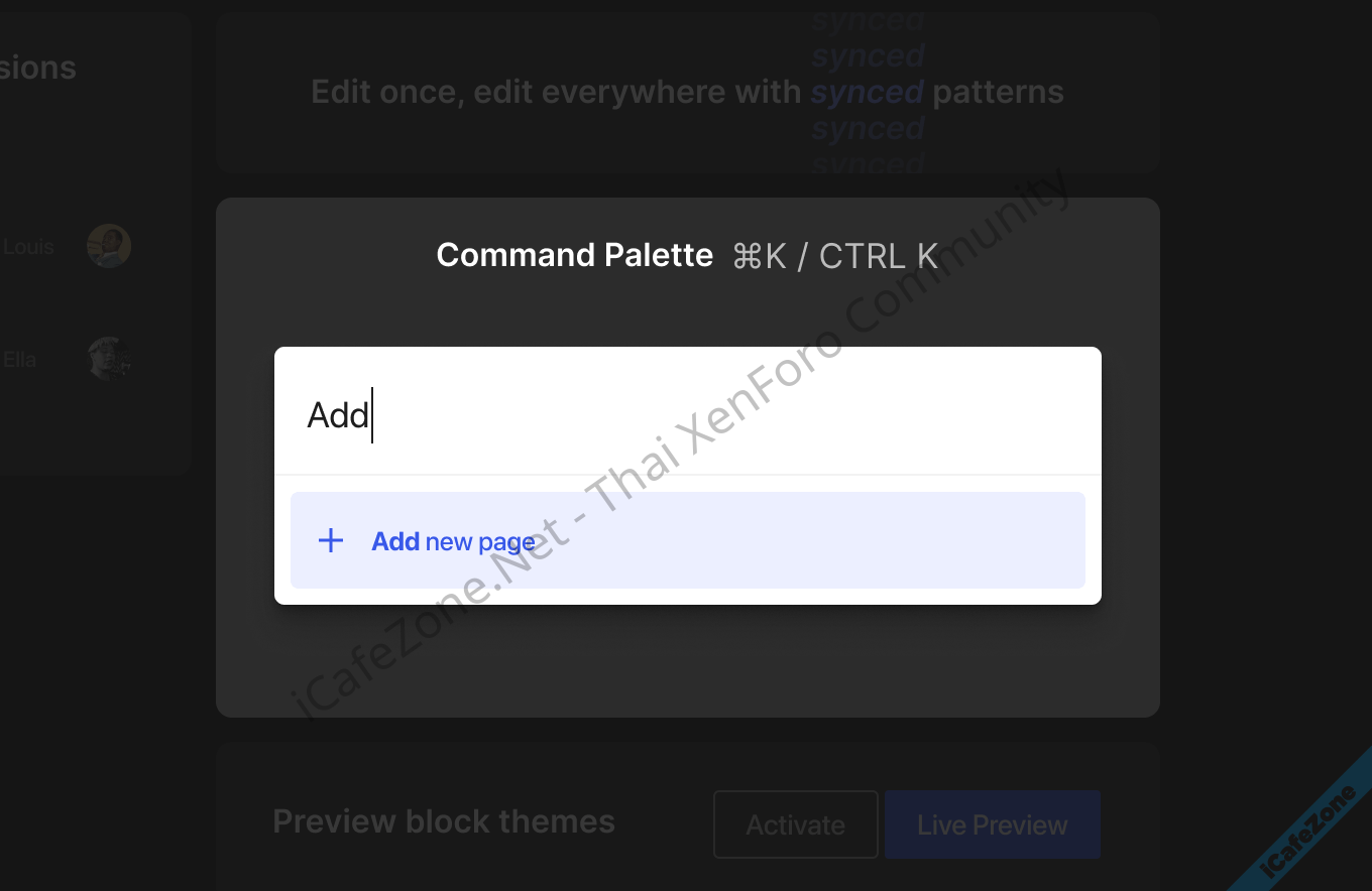 - Command Palette ปุ่มลัด (Ctrl+K หรือ Cmd+K) สำหรับพิมพ์คำสั่งต่างๆ ในระบบ WordPress ได้ทันที (ลักษณะเดียวกับ Spotlight ของ macOS)