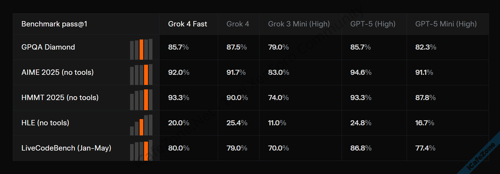 ตารางเปรียบเทียบของ xAI บอกว่า Grok 4 Fast แบบ reasoning มีต้นทุนค่ารันถูกกว่า Grok 4 ถึง 47 เท่า แลกกับประสิทธิภาพในการตอบที่ลดลงไม่มากนัก และถ้าเทียบเบนช์มาร์คบางด้าน เช่น การประมวลผลเฉพาะข้อความ ก็คือเทียบเท่า Grok 4 ตัวเต็มเลยด้วยซ้ำ