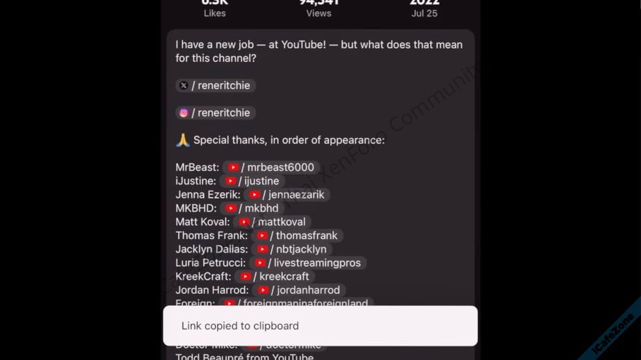 ข้อความอธิบาย (description) ของวิดีโอมีลูกเล่นมากขึ้น ใส่ลิงก์โซเชียลแล้วมีไอคอนขึ้นให้เห็น มีช่องรวมลิงก์โซเชียลทั้งหมดแยกต่างหาก และกดค้างเพื่อคัดลอกลิงก์ลงคลิปบอร์ดได้