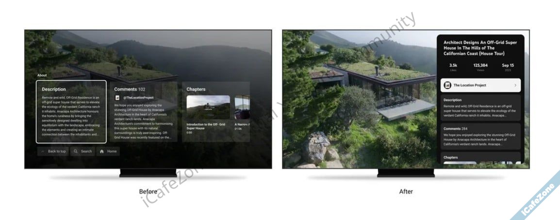 แอพเวอร์ชันสมาร์ททีวียังเพิ่มของใหม่เล็กน้อย ปรับคำอธิบายวิดีโอให้ใช้ง่ายขึ้น เปลี่ยนมาเป็นเมนูแบบแนวตั้ง (vertical menu) เพื่อหาคำอธิบาย คอมเมนต์ ปุ่มต่างๆ ได้เร็วกว่าเดิม