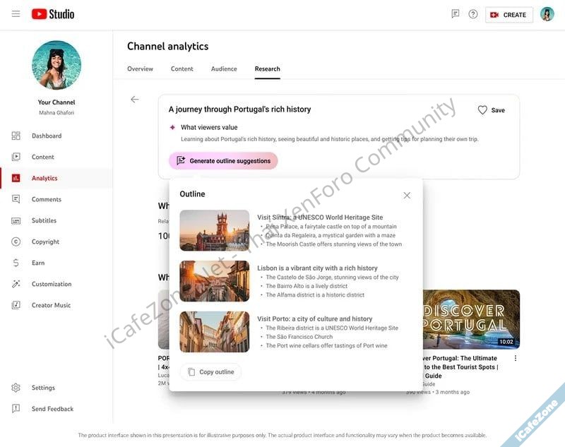 สุดท้ายคือ AI Insights ฟีเจอร์ใหม่ใน YouTube Studio ที่ช่วยแนะนำไอเดีย หรือหัวข้อน่าสนใจสำหรับสร้างสรรค์วิดีโอตัวถัดไป คำแนะนำนี้จะถูกสร้างขึ้นเฉพาะครีเอเตอร์แต่ละคน อาศัยข้อมูลว่าอะไรที่เป็นกระแสอยู่ในกลุ่มผู้ชมของช่อง ระบบแนะนำนี้ยังช่วยทั้งการเขียนคำอธิบายวิดีโอ จนถึงเสียงประกอบที่น่าจะนำมาใช้งาน นอกจากนี้ YouTube ยังนำความสามารถการสร้างเสียงพากย์ภาษาต่าง ๆ อัตโนมัติ ซึ่งพัฒนาจาก Aloud สตาร์ทอัพของโครงการ Area 120 มาให้ใช้งานด้วย