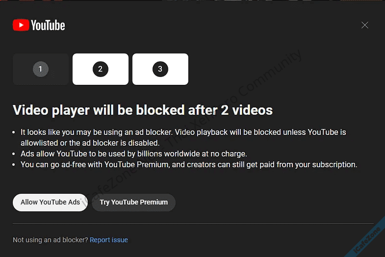 YouTube เคยประกาศมาตรการนี้ไว้ตั้งแต่เดือนพฤษภาคม ว่าหากใช้ ad blocker จะขึ้นข้อความแจ้งเตือนที่ตัว player และอนุญาตให้เล่นคลิปวิดีโอได้เพียง 3 คลิปเท่านั้น ตอนนี้ระบบดังกล่าวเริ่มถูกเปิดใช้งานแล้ว