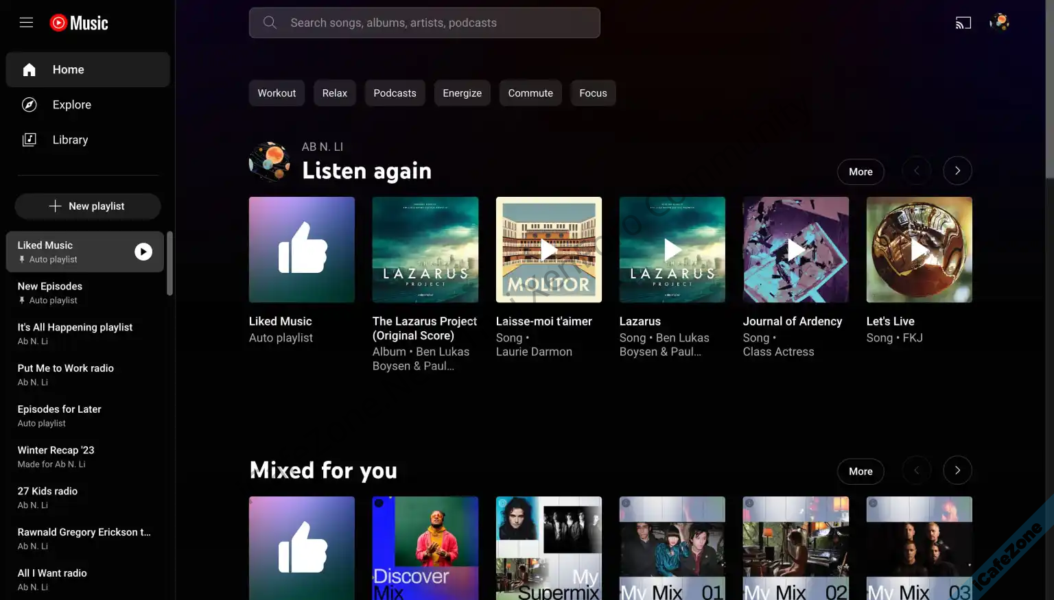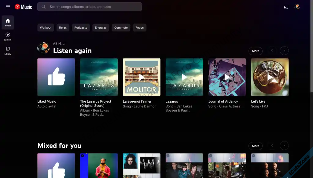 YouTube Music รีดีไซน์หน้าเว็บแบบเดกส์ท็อปครั้งใหญ่ โดยย้ายแถบ Home, Explore, และ Library จากเดิมที่อยู่ด้านบนสุดมาอยู่ในแท็บ Navigation Drawer (แถบ 3 ขีด) ซึ่งอยู่มุมบนซ้าย แบบเดียวกับ YouTube